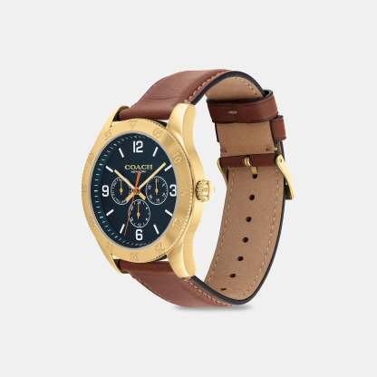 Gold tone case and leather strap Approx. case diameter - 42mm Mineral crystal Quartz movement Buckle closure Water-resistant to 99 feet Style No. C6531 | Outlet Casey Watch, 42 Mm - Brown