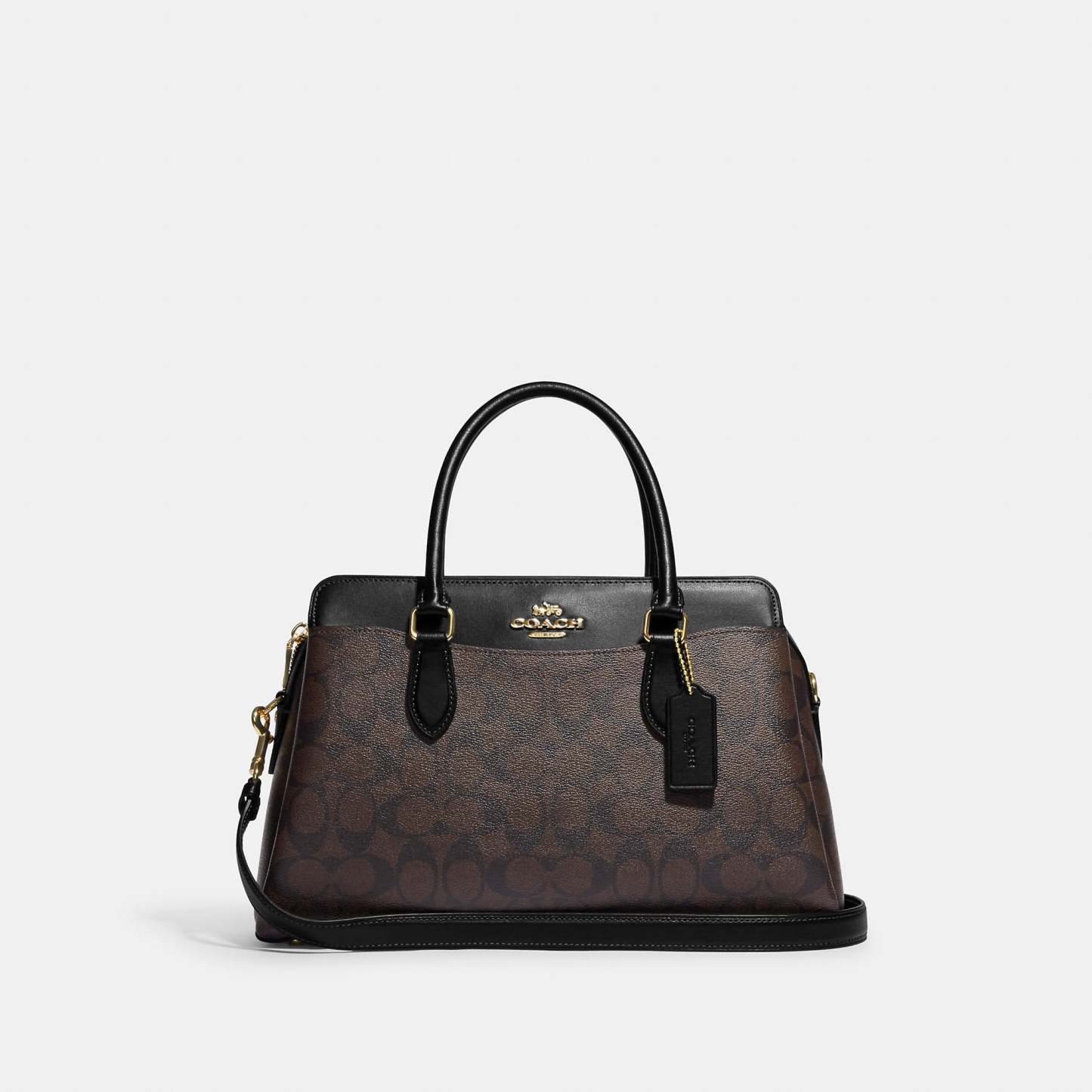Signature coated canvas and smooth leather Inside zip and multifunction pockets Zip closure fabric lining Side slip compartments Handles with 4 1/4 drop Outside open pockets Detachable strap with 20 1/2 drop for shoulder or crossbody wear Four protective feet at base 12 3/4 (L) x 8 1/4 (H) x 5 1/2 (W) Style No. CH488 | Outlet Darcie Carryall In Signature Canvas - Brown